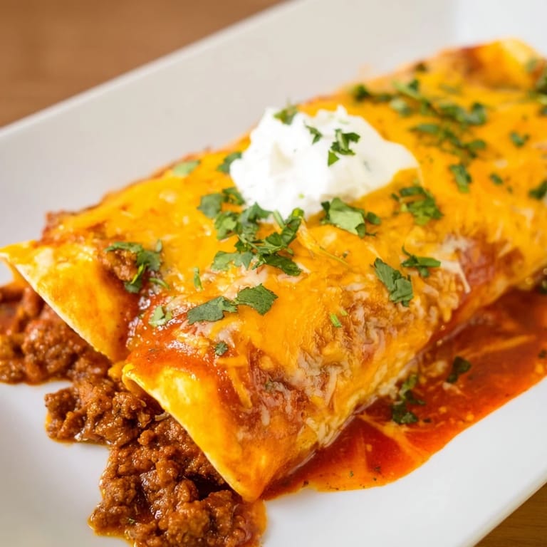 Save Pin The first time I made enchiladas, I was crammed into a tiny apartment kitchen with my sister, both of us hovering over a single battered skillet while steam fogged up the windows. We'd impulse-bought ingredients after watching a cooking show and had no idea what we were doing, but the smell of cumin and beef filling that small space made everything feel warm and possible. They weren't pretty, but sitting cross-legged on the floor with those messy, cheese-smothered rolls turned a random Tuesday into something that felt like home.