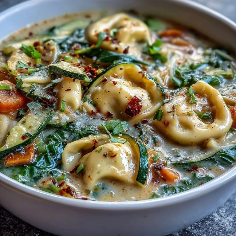 This soup deserves a good crusty bread alongside it, something you can tear and use to soak up the last creamy spoonfuls at the bottom of your bowl. A simple green salad balances the richness, and if you're feeling it, a glass of crisp white wine makes the whole meal feel intentional rather than just dinner. The soup also reheats beautifully the next day, though you might need to add a splash of broth or milk to loosen it up since the tortellini and vegetables will have absorbed some of the liquid while sitting.
